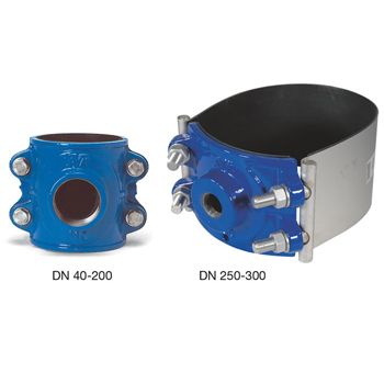 Abraçadeira de ramal para tubos de PE e PVC para água e águas residuais tratadas a máx. 70°C.