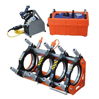 Máquina de alinhamento automático para soldadura de tubos em pressão e tubos de drenagem utilizados no transporte de água, gás e/ou outros fluídos. Construída segundo a norma UNI 10565, ISO12176-1.