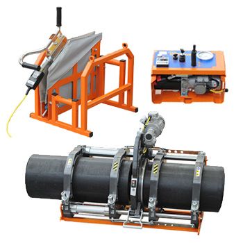 Máquina de alinhamento automático para soldadura de tubos em pressão e tubos de drenagem utilizados no transporte de água, gás e/ou outros fluídos. Construída segundo a norma UNI 10565, ISO12176-1.
