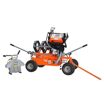 Máquina electro-hidráulica acoplada a trailer (pode ser removida para trabalho em vala) para soldadura de tubos em pressão e tubos de drenagem utilizados no transporte de água, gás e/ou outros fluídos. Preparada para soldadura conforma à norma ISO21307 High Pressure.