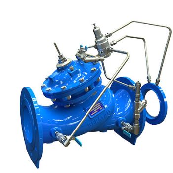 Válvula hidráulica de controlo de caudal que mantém um nível de caudal máximo pré-definido, independentemente de flutuações no consumo ou pressão da rede.