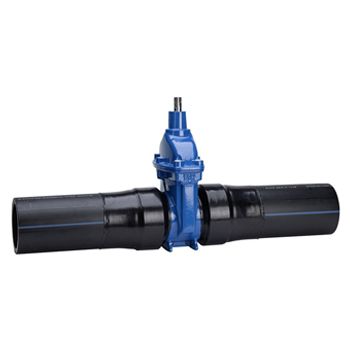Válvula de cunha com extremidades de PE100 SDR11 PN16. Para água potável e líquidos neutros.